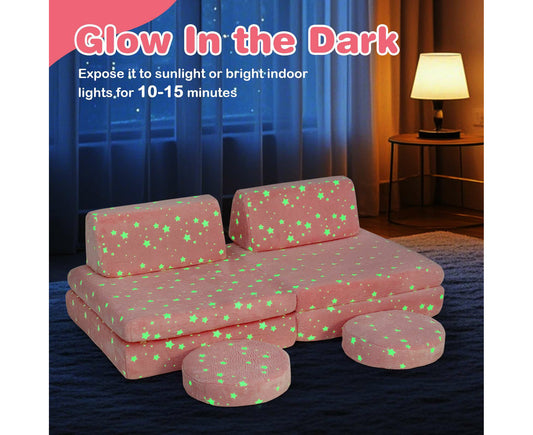 6PCS Kids Modular Play Couch Glow Sofa Set